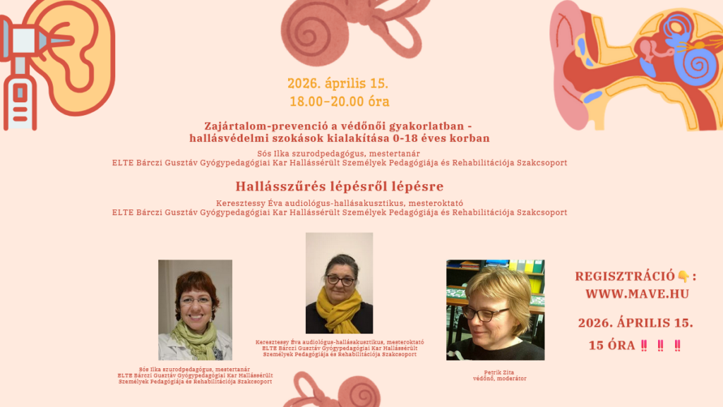 Előadó: Keresztessy Éva audiológus, hallásakusztikus, mesteroktató, ELTE Bárczi Gusztáv Gyógypedagógiai Kar, Hallássérült Személyek Pedagógiája és Rehabilitációja Szakcsoport